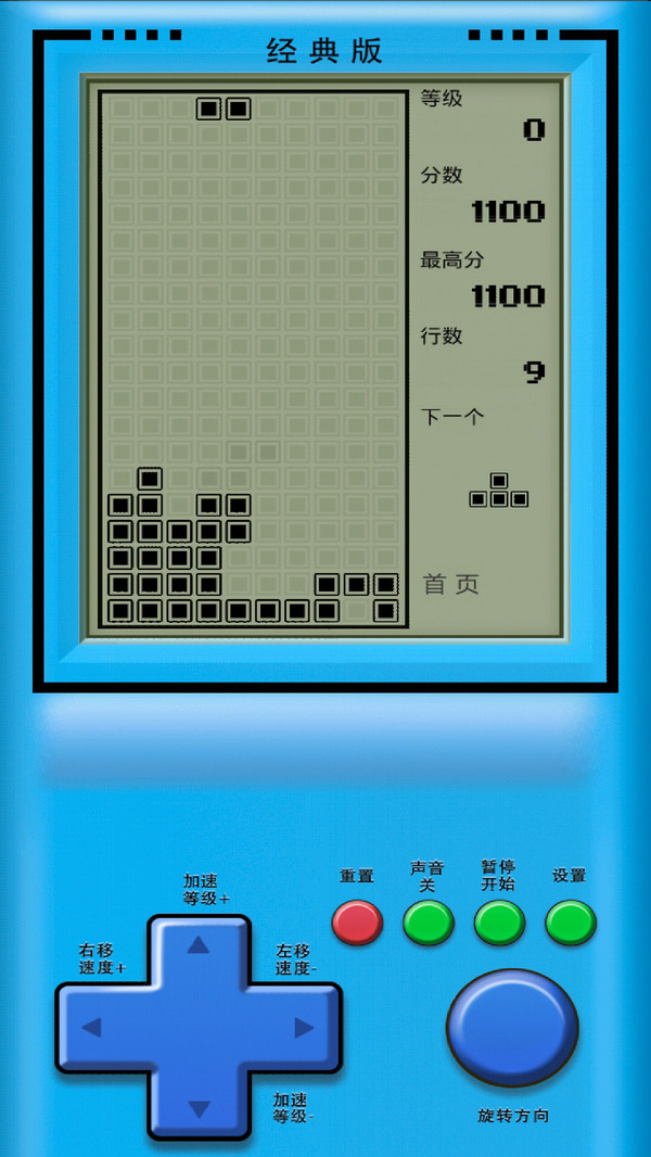 1、下落模式:经典俄罗斯方块玩法,使用宫格旁的键控制罗斯方块的下落,同时消除的行数越多,得分越高;
