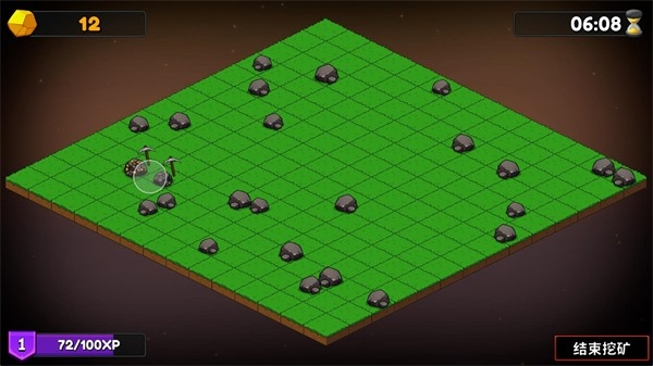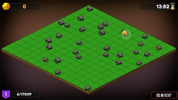 2、正式开始后点击矿石就可以进行挖矿,在悬浮球范围内的所有矿石都会被采集。