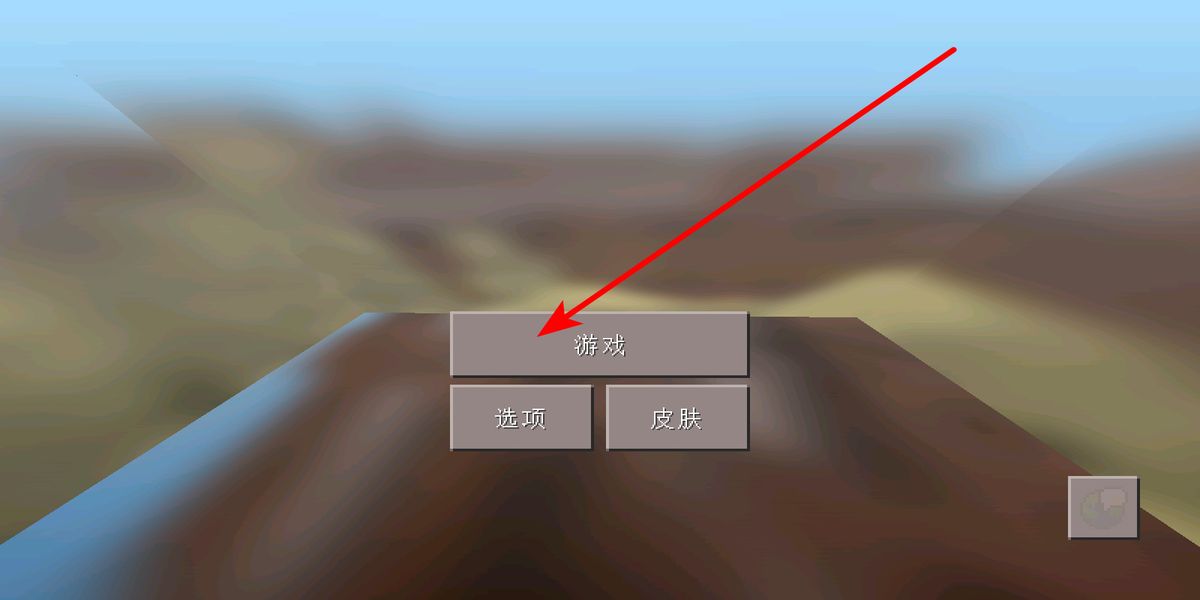 1. 当你进入游戏,会看到游戏选项、皮肤这三个按钮。点击“游戏”按钮,即可开启你的游戏冒险之旅,进入具体的游戏世界选择与创建界面。