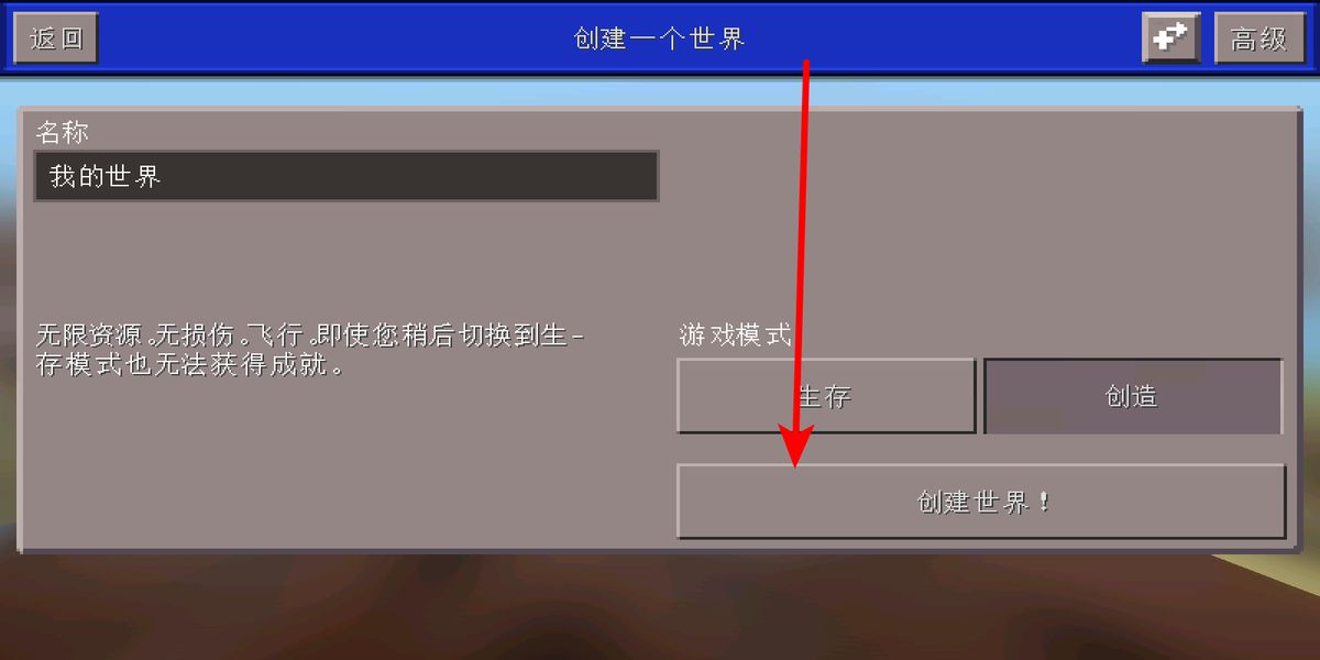 2. 在创建世界界面,你不仅能够为世界命名,还能从生存与创造这两种模式中进行选择。完成选择后,点击“创建世界”按钮,即可生成专属于你的世界,进而开启探索与建造之旅。