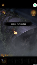 6、重新回到棺材跟前,先点击砍刀,接着点击棺材,这样就能砍断藤蔓,把棺材打开。