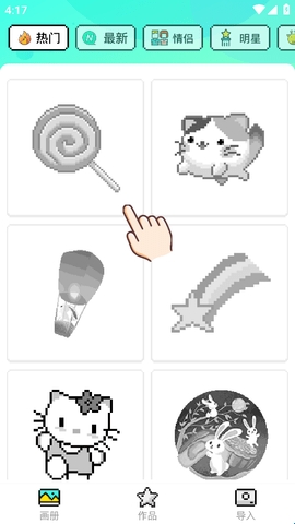 4、你还能够在游戏中导入照片图片等等,将其制作成为像素的形式进行上色!