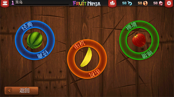 特效:在街机和禅境模式中会使水果额外反弹一次(说白了,就是没有切到的水果再重新抛一次。)