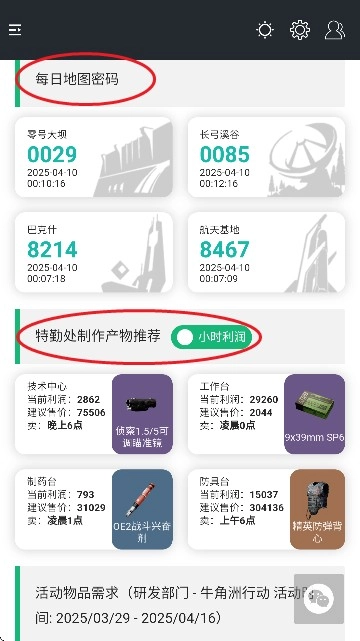 3、比如我们能够查看每日地图密码,亦或是特勤处制作产物推荐,
