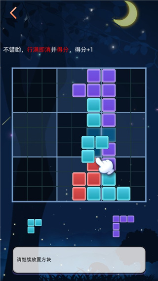 1、游戏里,玩家需把方块完整填满一行或一列,方可实现消除。