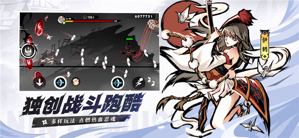 3、我们所设计的人物与boss形象,拥有别具一格的画风。人物动作生动且极具张力,忍者技能冷静而充满力量,把忍者的炫酷与飘逸展现得酣畅淋漓。