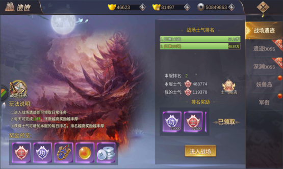首先人人参加跨服战斗的玩家,但是参与跨服资源争夺,自然是玩家实力越强能够获取的资源越多,身后指不定还跟着一群小弟~那做老大的感觉真是美滋滋。在参加跨服战斗的时候会直接代入角色身上的装备、称号、技能等数据,所以角色的双防、攻击、战斗力等都要努力去提升。