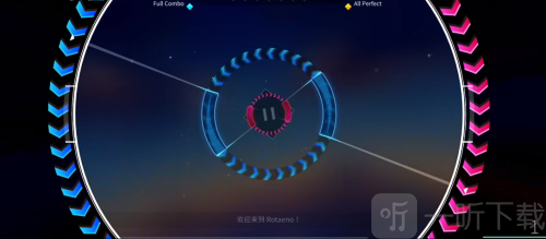 Rotaeno的核心就在于这个ROTATE音符。当红色ROTATE音符与判定圈重合的刹那,玩家要顺时针快速转动手机;而蓝色ROTATE音符则要求玩家逆时针快速转动手机。