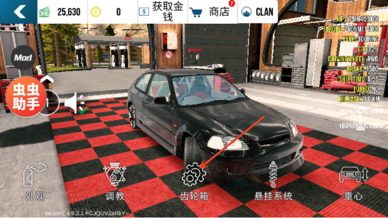 3、有外观、调教、齿轮箱、悬挂系统、重心等可以调整,选择齿轮箱;