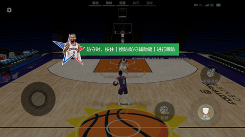 6、防守时,按住换防来进行跟防。