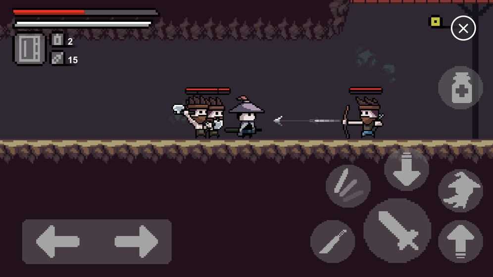 -硬核横版动作:这是一款以进攻、闪避、格挡为核心要素的横版动作游戏。在游戏过程中,玩家要在应对敌人招数的同时找准时机发动进攻。此外,游戏中的武功、暗器以及药瓶等元素,都能助力玩家战胜对手。