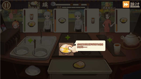 4、当制作出来的食物与顾客的要求一致时,把食物供应给顾客,便可获得相应的金币。