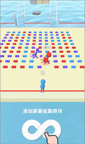 1、在七匣子成功安装《搬砖争霸赛》后,进入游戏,此时你能够通过滑动屏幕来收集砖块,不过只能收集与自身颜色一致的地砖。