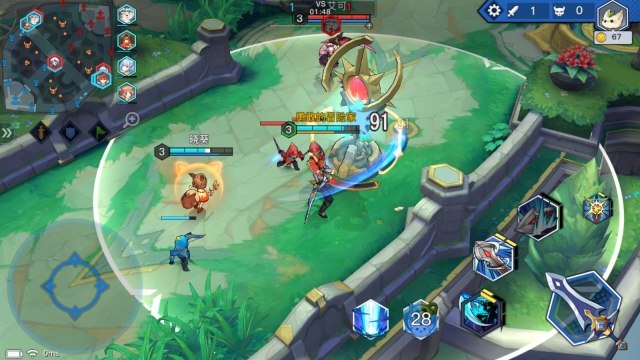 玩家被分为两组,每组以五人组成小队,在一张设有三路兵线的地图上展开相互对抗。