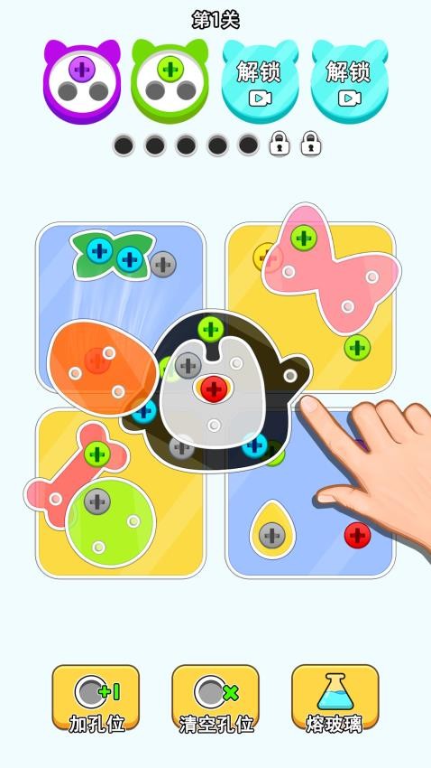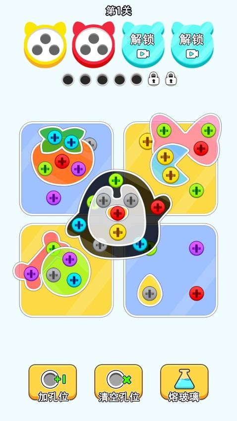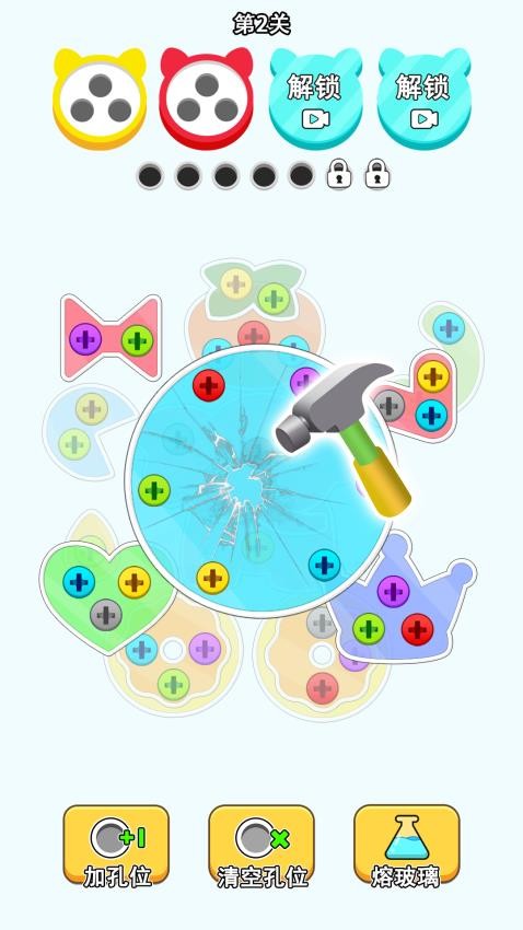 1、目标明确:玩家需要首先了解每一关的目标,熟悉屏幕上的螺丝形状和特殊道具的作用,才能制定出更有效的策略。