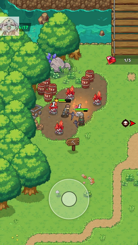 2、拖动小人靠近敌人就好自动进行攻击。