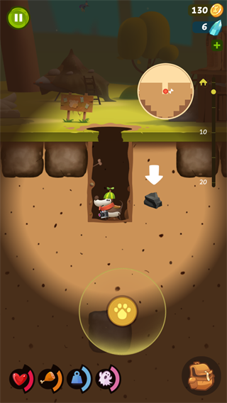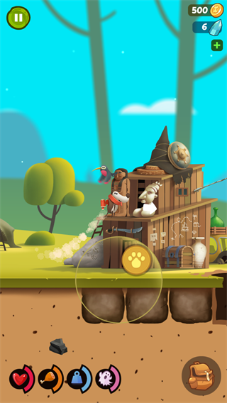 2、在关卡中会出现许多有缝隙的地方,小狗一不注意就会掉下去,但是细心的玩家就会发现游戏中那些场景道具其实是可以移动的。玩家可以将道具推到合适的缝隙处填补缝隙,减少掉下去的几率。