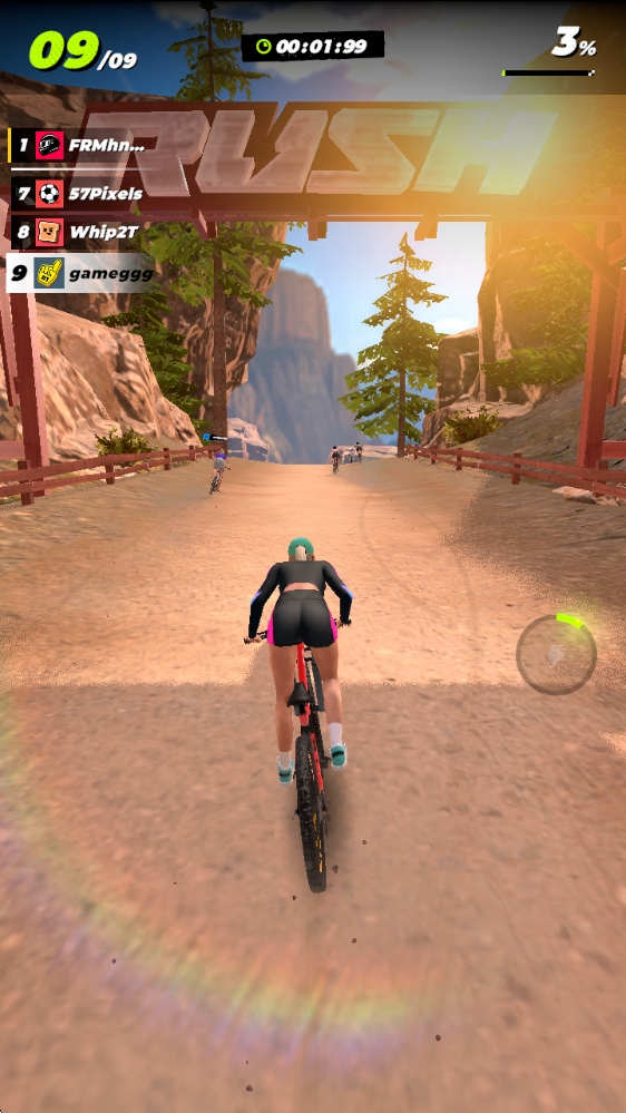 rush极限是一款赛车竞速类。你是一名自行车职业骑手,喜欢报名参加各种自行车比赛。游戏中有许多赛道都可以进行挑战,每个赛道跑起来的感觉都不相同,并且需要根据不同的赛道来调整自己的自行车,更改对应的轮胎,这样可以帮助玩家更好的操控自己的车辆。