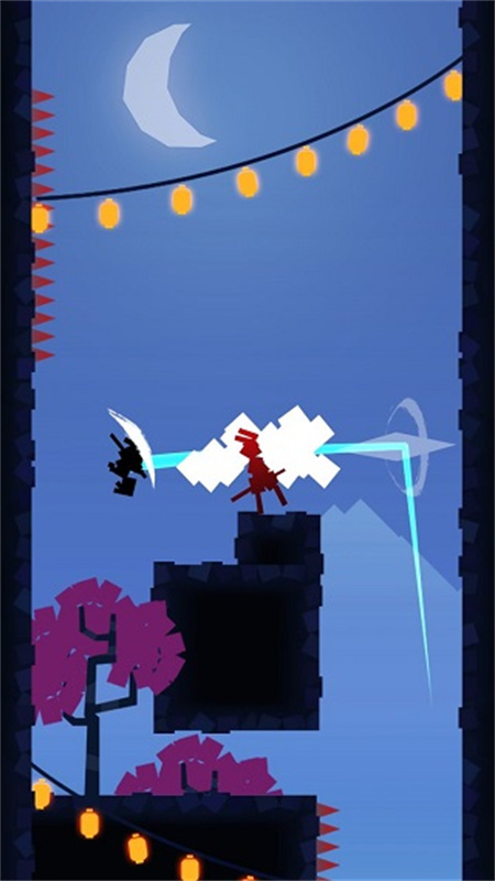 2、当忍者在空中的时候,再次按住屏幕,然后可以再次向你选择的方向跳出,相当于是多段跳的意思。