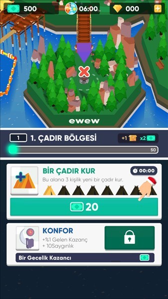1、在闲置露营帝国游戏开始时,你需要根据提示创建一个营地名称,点击【TAMAM!】确认。