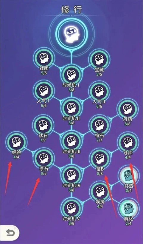 修行系统中存在虚空资源加成机制,当达到尊敬等级后,可激活四项增益:7级及以上的原石矿采集效率提升、7级及以上的镭b矿采集效率提升、能量存储仓库的容量上限增加,以及虚空小队获取的等级经验加成。