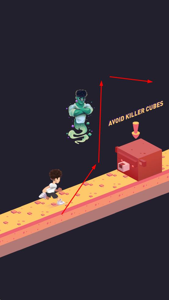 3、注意AVOIDKILLERCUBES的提示,控制角色避开红色杀手方块,确保跑酷能顺利进行。