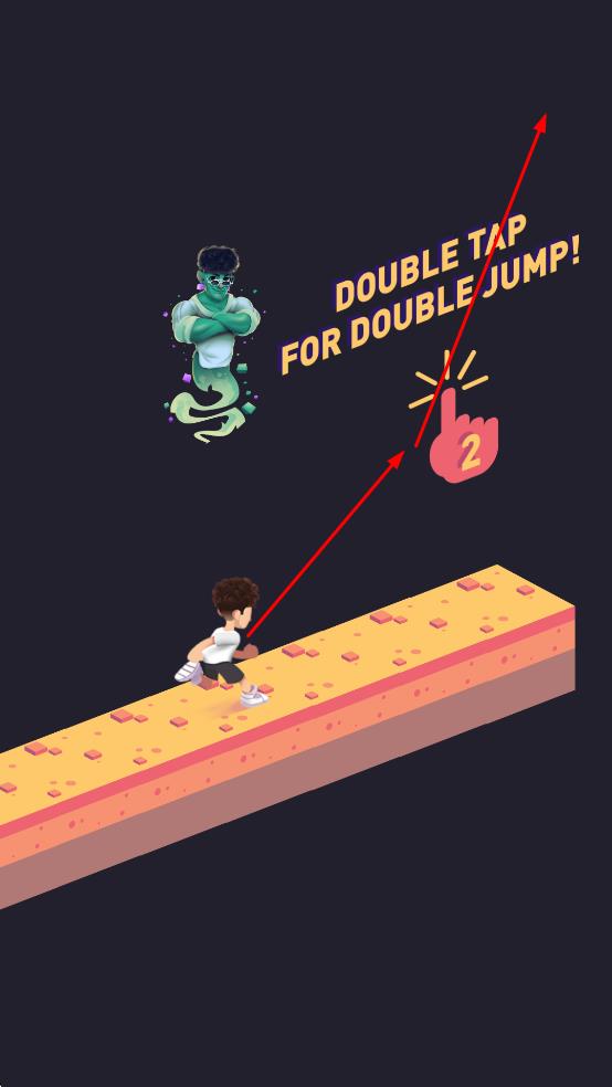 2当界面上出现提示文字时,连续快速点击屏幕两次,即可触发额外的跳跃动作,帮助跨越那些高度更高的障碍物。