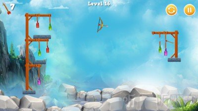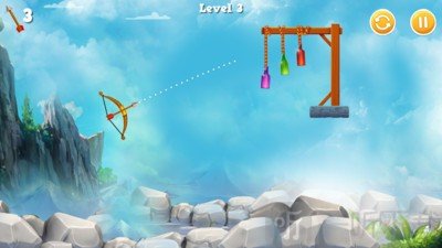 3. 借助箭头切断绳索并击倒瓶子,以此呈现射箭技艺。专业级别的模式难度更高。