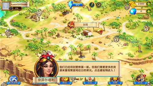 1、根据埃及人民需求来完成任务,玩消除游戏获取建设资源。