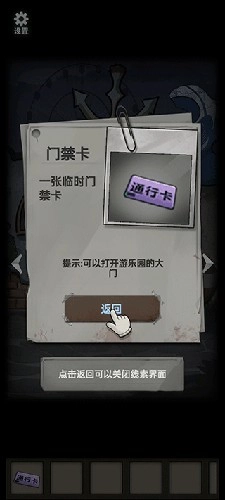 3、大门是锁住的,所以需要去找到通行卡,可以切换场景寻找;
