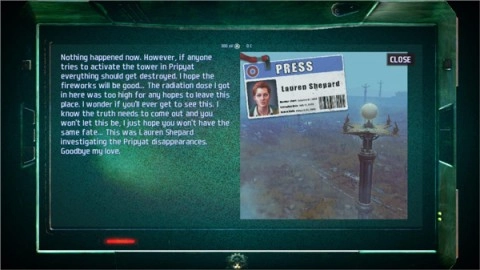 3、拿到铁锤后接着往前走,能发现和电站工作人员有关的重要信息,解开未解之谜的关键线索就藏在这里。