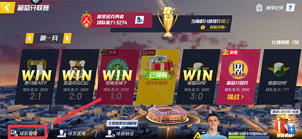 4、在关卡挑战可以根据不同的阵容切换不同的球员。