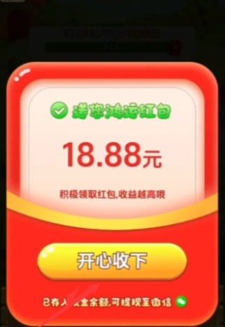 红包累积金额:玩家需要在游戏中累积一定金额的红包,通常这个金额会有一个最低限制,比如满0.3元或更高金额才能提现。
