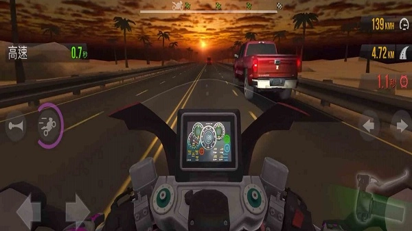 3、第一人称视角:沉浸式驾驶舱视图,实时显示仪表板、后视镜和车身倾斜角度,增强操作沉浸感。