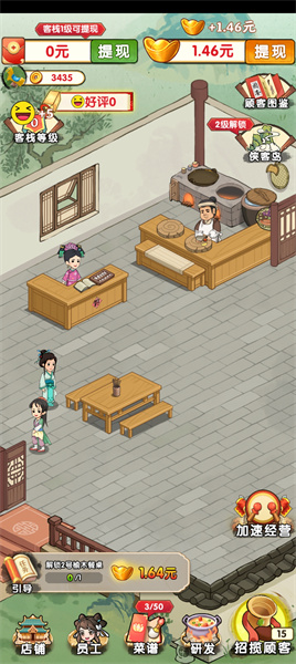 一款以经典角色为背景的客栈经营游戏,玩家将化身为故事中的主角,在虚拟的客栈场景里开启创业之旅。游戏操作以点击交互为主,玩家需要时刻关注顾客的即时需求,精准提供对应的服务内容,以此积累正面评价与游戏内的货币、积分资源。随着玩家在游戏中不断升级,系统会解锁更多类型的经营任务与功能设备,角色互动和场景细节也会变得更加丰富。该游戏采用免费模式,融合了策略规划与商业运营的核心玩法,让玩家在经营过程中体验决策与管理的乐趣。