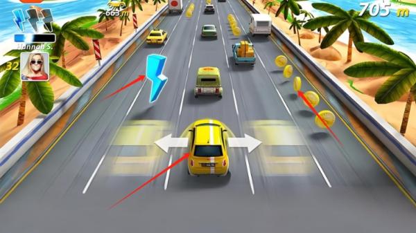 1、练习基础的左右闪躲操作,在简易路况里熟悉车辆移动的节奏,学会避开迎面驶来车辆的方法。