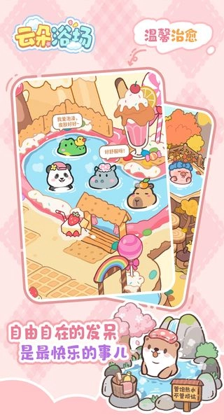 云朵浴场是一款治愈系的模拟经营,扮演一位温泉浴场的管理者,通过布置各种风格独特的浴池与休闲设施来吸引顾客,每位顾客都有不同的需求与喜好,需要合理安排服务流程并升级设备,解锁更多装饰物使浴场越来越受欢迎,宁静的背景音乐与温馨的画面共同营造出放松舒适的氛围。