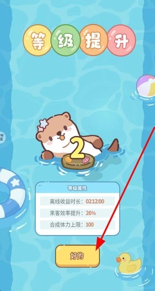 4、确认等级提升解锁属性加成,延长离线收益时长、提升来客效率,增强浴场经营能力。