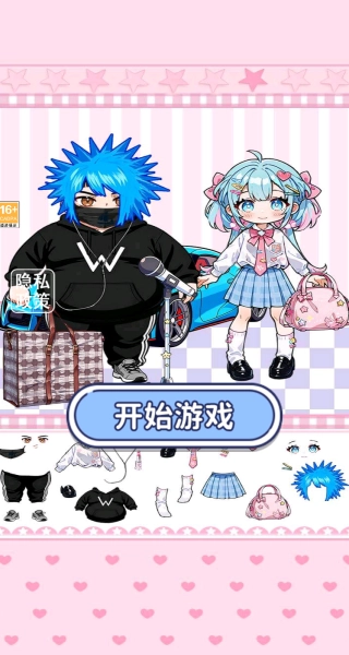 1进入游戏后,能看到一男一女两个学渣形象的人偶,点击开始游戏,即可进入包含多种选择的安静书模式界面。