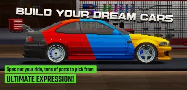 画面风格上,我们融合了2.5D像素质感与当下流行的3D特效,让复古韵味与前沿科技感相互交织,打造出别具一格的视觉体验;改装玩法方面,不仅有数十款不同车型可供选择,还有涵盖引擎、轮胎、车身外观套件等在内的数百种零件,玩家可以自由调整车辆性能参数,也能按照自己的喜好定制专属涂装,深度体验个性化改装的乐趣。