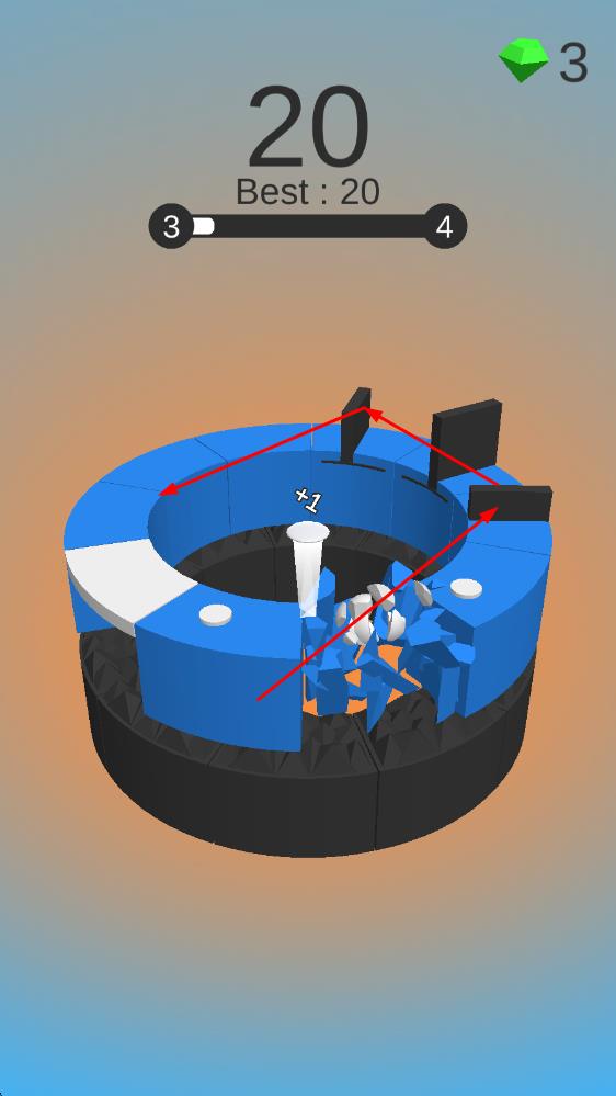 3、要是能在球球抵达之前,精准操控环箍躲开所有障碍并完成击碎目标,就能不断积累分数,向更高关卡发起挑战;反之,游戏就会结束。