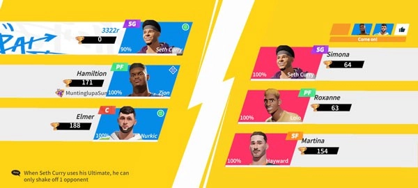 当快小编小提示:《全明星街球派对》大多数模式只能上场3人,各位巨星可以根据自己的操作习惯,以及阵容的需求来选择当局上场球员。