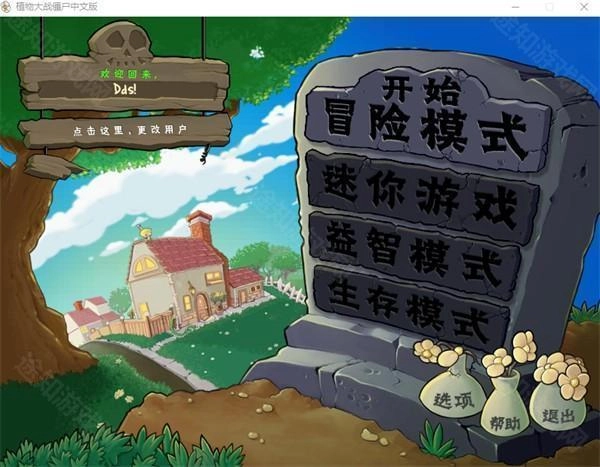 1、打开植物娘大战僵尸之后,我们可以看到下图所示内容,因为作者只是修改植物立绘和特效,所以基本的玩法还是原版内容