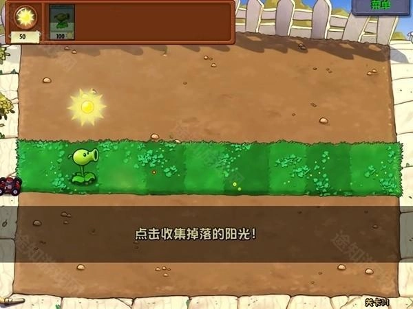 4、所以在新手教程里,我们需要通过收集阳光来召唤豌豆射手抵御僵尸的攻击