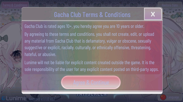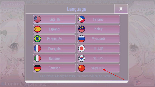 1首先打开GACHA甜甜正版应用,接着找到界面右下角的language按钮并点击。