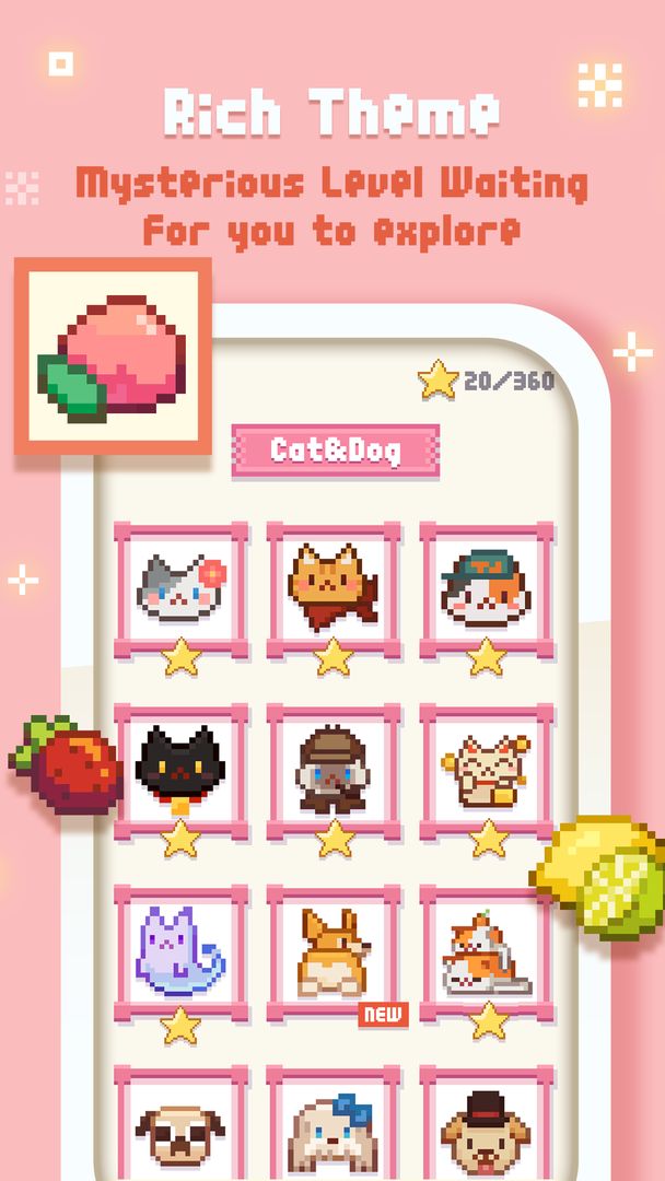 3、各种有趣的像素画等你完成,越往后难度越大。