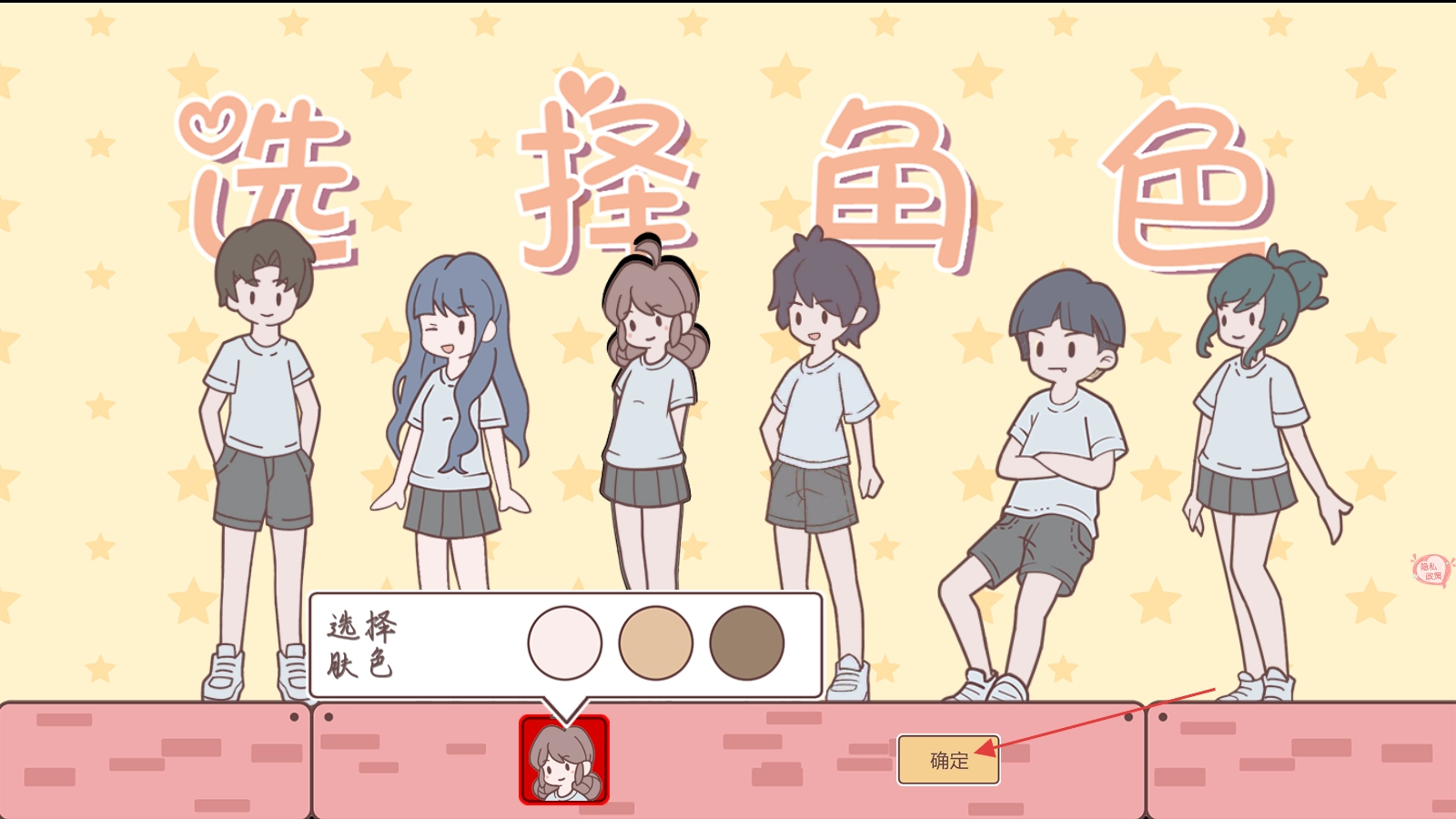 1、打开游戏女友的小闺房,选角色形象、肤色,点击【确定】进入游戏场景。