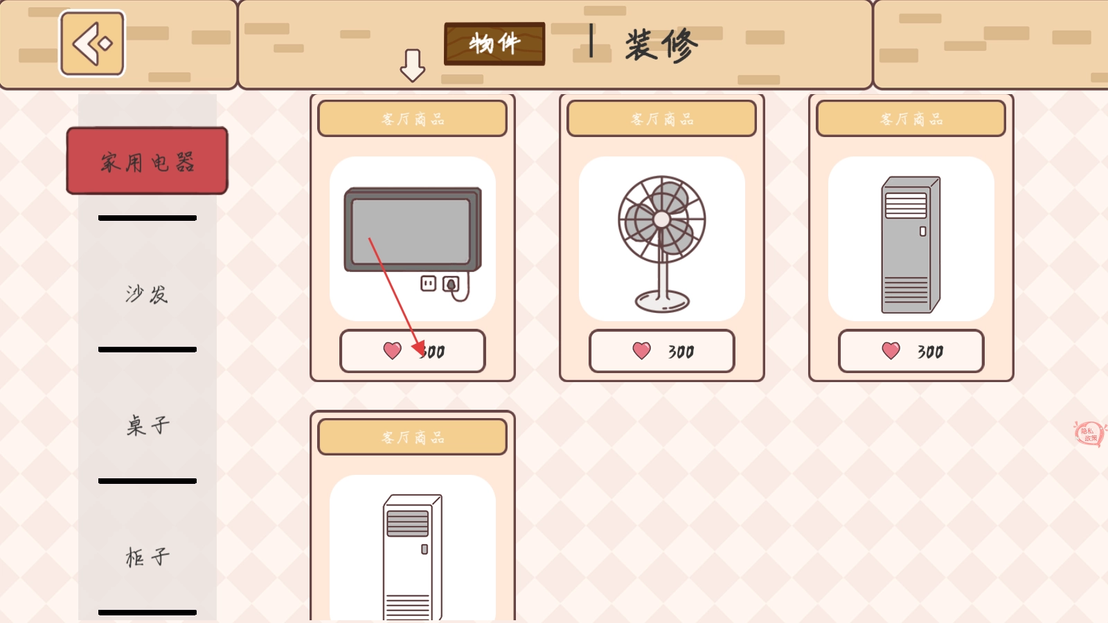 2、到家装界面,用爱心值买家具,布置专属房间。
