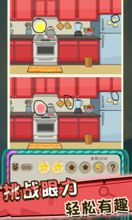 这款趣味找茬游戏,需要你在限定时间里找出两张图片间的差异。通过积累星星来开启后续关卡,解锁更多精美图片。温馨提示:可别随意点击,一旦点错,你的游戏时间就会大幅缩短哦。