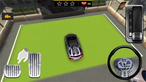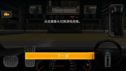 4、操作界面从左到右依次排列着刹车、油门和方向盘,左上方设有视角切换功能,右上方则是档位控制区域。大家可以依据自己的操作习惯来调整汽车倒车入库时的位置,同时要合理掌控行驶方向,注意避开碰撞,最终把车辆平稳地停放进库位里。